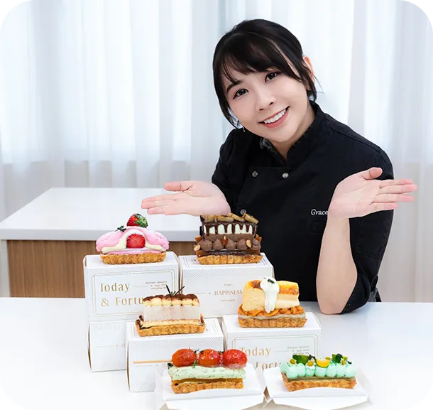She holds a certified instructor diploma from the Korea KDFC Association and has personally taught thousands of students. Her workshops have reached Hong Kong, Taiwan, Indonesia, Brunei, Myanmar, Singapore, and cities across Malaysia — loved by students everywhere. Grace’s expertise has been recognized by multiple media outlets, including TV2, Sin Chew Daily, China Press, Oriental Daily, Sisters Magazine, and Singapore’s Epicure. She is committed to transforming complex techniques into practical skills anyone can master, helping students turn passion into capability and experience the joy of baking with confidence