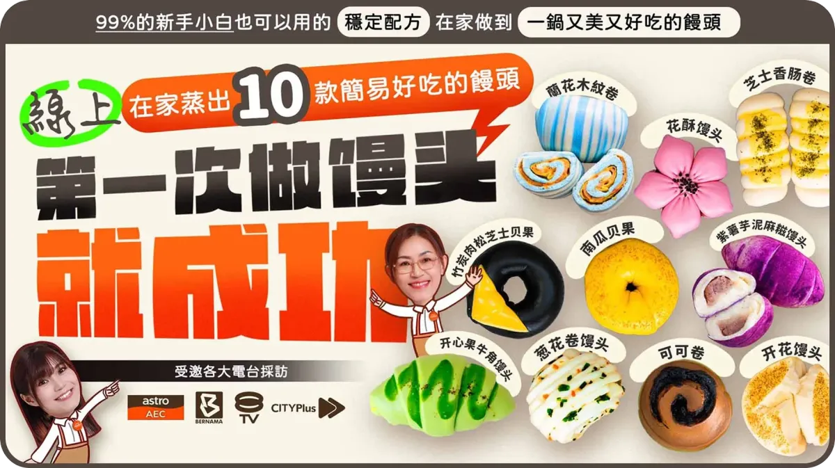 從基本的原味饅頭到進階的天然蔬果泥调色、造型技巧,再到麵團變化,通通教到完