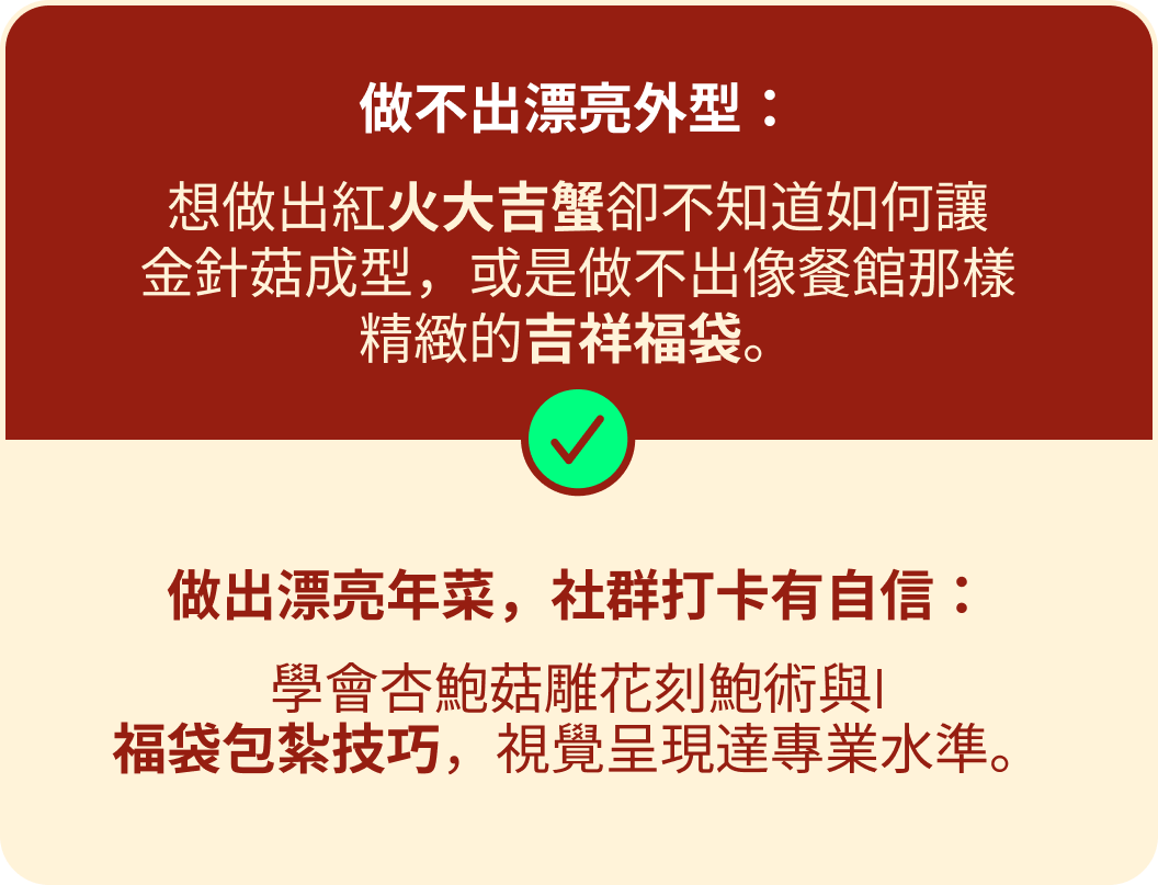 這堂課的料理,不只是煮給自己吃,而是節慶能擺上桌、宴客不失禮的完成度。